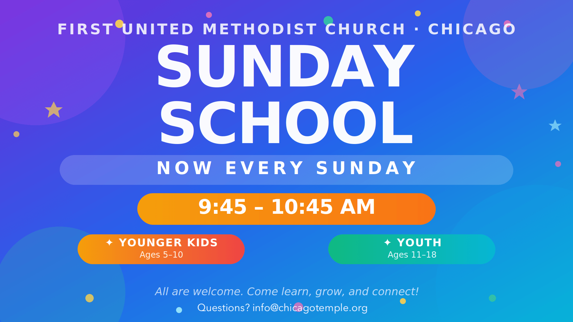 The United Methodist Church forms disciples of Jesus Christ who, empowered by the Holy Spirit, love boldly, serve joyfully, and lead courageously in local communities and worldwide connections.